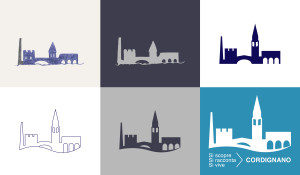 C’è una storia interessante dietro al nostro logo. Lo spunto infatti viene dalla fotografia di una lamina metallica di epoca paleoveneta, ritrovata su un libricino del Gruppo Archeologico di Cordignano. Questo reperto archeologico, attualmente conservato al Museo del Cenedese di Vittorio Veneto è stato ritrovato sul Col Castelir di Cordignano e sembra rappresentare una fortificazione. Ci ha colpito molto e abbiamo cominciato a ragionare su un logo che si ispirasse alle forme della lamina appartenuta a popolazioni che vivevano nella stessa nostra terra secoli fa. E alla fine è arrivato il nostro logo, che vole raccogliere da ovest a est i luoghi più rappresentativi del Comune: la filanda di Pinidello, il Castelat di Villa di Villa, il campanile di Cordignano e il palazzo del dazio di Ponte della Muda. Punti di riferimento simbolicamente uniti con un ponte e “bagnati” dal fiume Meschio.